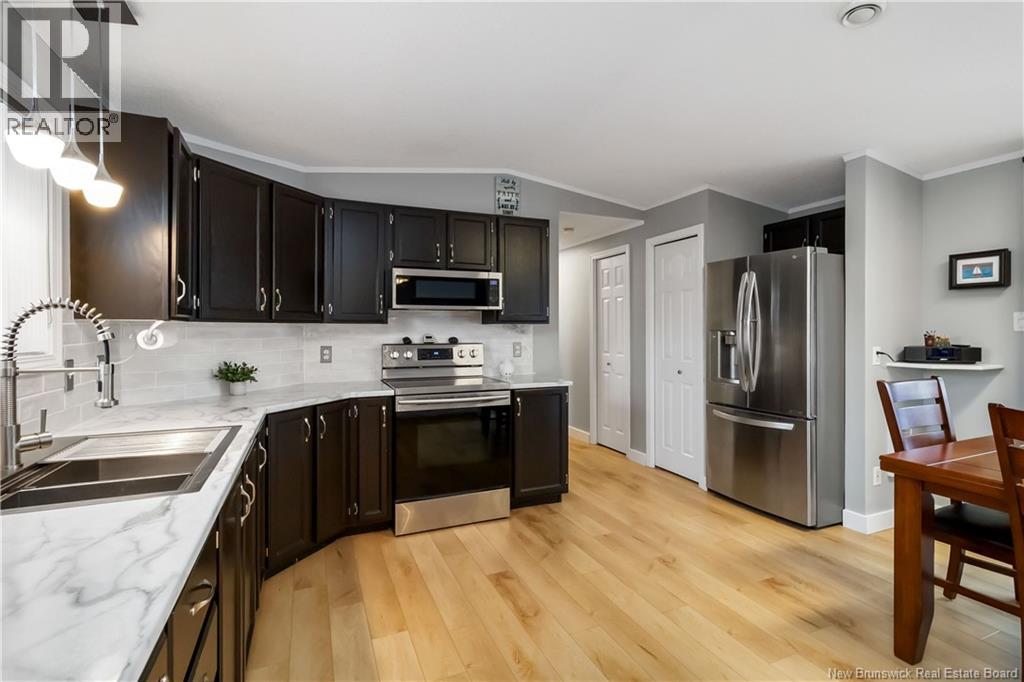 Welcome to 1 Sentier Street in Pine Tree Village, a clean and well-kept mini home park. This 3-bedroom, 1.5-bath home has a layout that works well for everyday living. You enter into an open kitchen and dining area, with the living room just off to the right. A hallway off the living room leads to the laundry area tucked behind closed doors, a full bathroom, and the primary bedroom located at the end of the home. On the opposite side of the home is a second hallway with two additional bedrooms, one currently used as an office, along with a conveniently located half bath in the hall. This split layout offers flexibility for families, guests, or working from home. The home is located in a convenient area of the park. The monthly lot fee is $427 and includes water, sewer, garbage pickup, and snow removal for the roads. The location offers easy access to everyday amenities, including Costco, Irishtown Nature Park, and services along and near Elmwood Drive. If you are looking for an affordable home with a functional layout in a well-maintained community, 1 Sentier Street is worth seeing in person. Book your showing today. (id:4069)